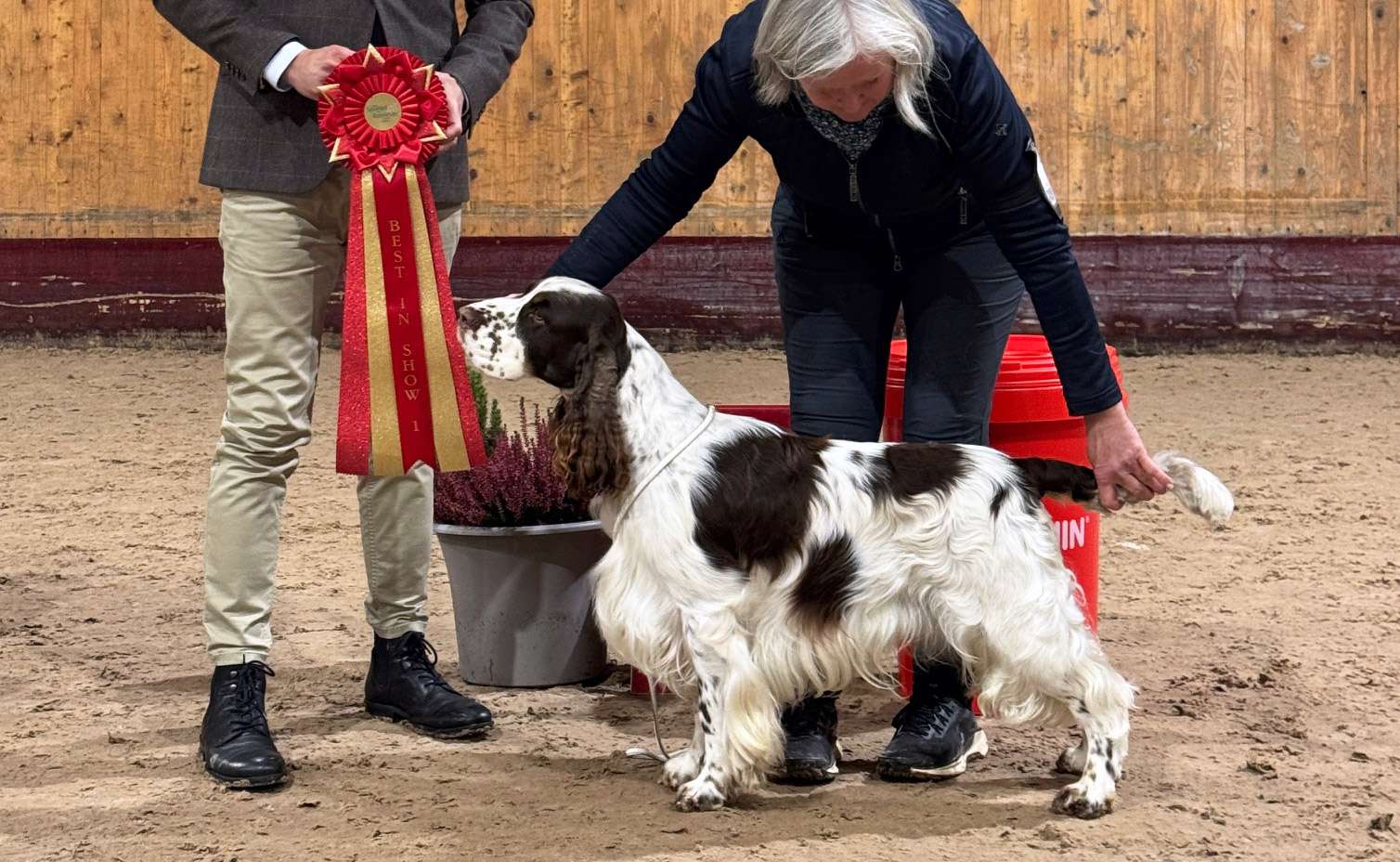 Vilken dag – vilken upplevelse, en vecka senare är jag fortfarande uppe bland molnen 🙂 Lördagen den 15 november höll SSRK sin sedvanliga utställning i Åstorp, en utställning vi varit på många gånger och ofta med bra resultat. Bara för att nämna något så blev Ella champion här, Iza BIS placerad valp och senare cert, på senare år har Nikkei tagit cert och blivit BIS 2 och vår uppfödargrupp BIS. Vi hade dock inga större förväntningar, mest för att det var så mörkt och kallt denna dag. Men så fel vi hade! Det började med att domaren Joakim Ohlsson tyckte att Tesla, Ch Beeline Time Is On My Side var bästa hane. Sedan vann Linneas Astrid, Beeline Dancing With The Stars, juniorklassen och slutade som BIR Junior och dessutom BIS 3 Junior! Vår Pingla, Beeline Strictly Come Dancing, och som är Astrid syster, ville också visa sig på styva linan och vann ungtikarnas klass. Sedan var det dags för Nikkei, Ch Beeline Run To The Sun, för första gången ute på 3 år och första starten i veteranklass. Hon visade att gammal är äldst och inte nog med att hon blev BIR Veteran så slog och till och blev bästa tik!  Som tvåa efter henne stod Pingla som också fick sitt första svenska cert. I BIR och BIM möttes alltså Nikkei och Tesla som är hennes son. Tesla blev BIR och Nikkei BIM. I finalerna så var det inte bara Astrid som det gick bra för. Vår uppfödargrupp blev BIS 2 och sedan blev det BIS x BIS för mor och son! Nikkei blev BIS veteran för domaren Helle Dan från Danmark och helt otroligt blev Tesla sedan BIS på hela utställningen för Joakim Ohlsson!! Vilka fantastiska hundar vi har, ni kan tro att de blivit ordentligt bortskämda med massor med godis och tugg under veckan. Jag är så otroligt stolt över dem och även så tacksam för Lotta Ringwall och Astrid som visade hundarna så fint. Tack även till er andra som hjälpte till att visa när vi skulle in med alla samtidigt i nästan varenda final! Glömde säga att Astrid och Pinga är barnbarn till Astrid, vilken helt fantastisk avelstik hon varit också.